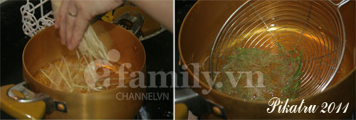 Cho ra đĩa, ăn nóng. Chấm với muối tiêu chanh.