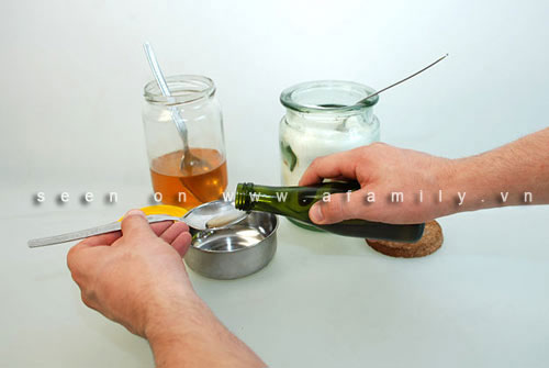 1. Trộn tất cả các thành phần thực phẩm đường, mật ong, dầu ô liu lại với nhau và trộn đều chúng để tạo thành một hỗn hợp sền sệt.