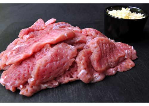 Thịt xắt miếng dày khoảng 1cm, lấy búa dần mỏng còn khoảng 0,5cm. Tỏi bằm nhỏ.