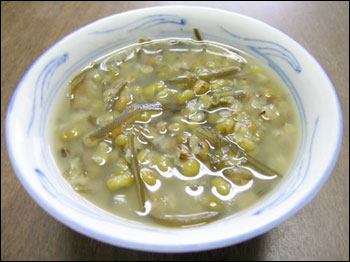 Cách làm - cách dùng: phổ tai dùng nước ấm ngâm nở, rửa sạch, thái sợi; hạnh nhân ngâm trong nước nóng rồi bỏ vỏ lụa; hoa hồng xé phay, dùng nước ngâm hai giờ, rửa sạch; đậu xanh vo sạch. Tất cả vật liệu cho vào trong nồi, thêm nước vừa đủ, nấu sôi, chuyển lửa nhỏ nấu đến khi đậu nhừ, nêm đường đen vừa đủ, để hơi ấm thì dùng.