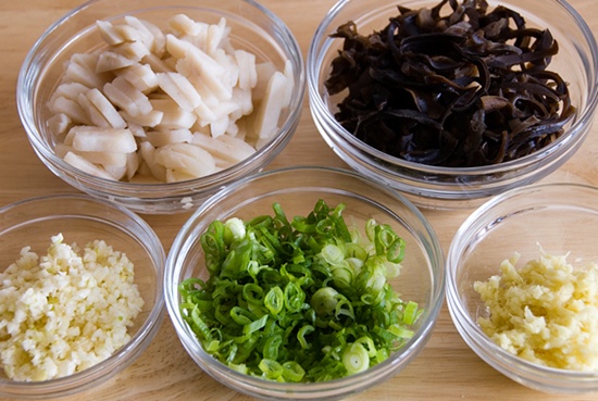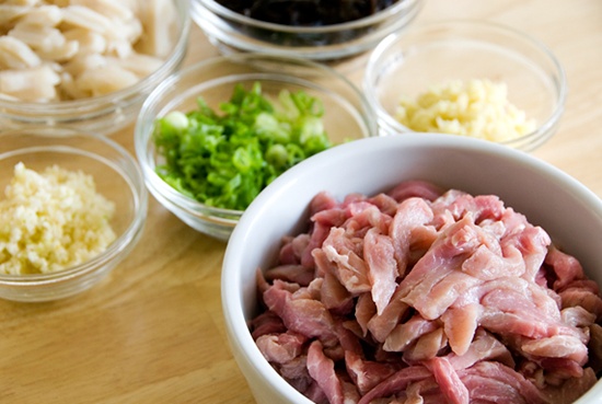 - Vài cái mộc nhĩ, ngâm nước nóng cho nở, bỏ chân, thái sợi to.