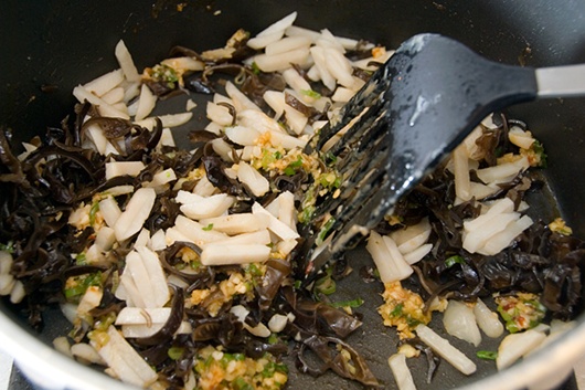 Thêm củ năng và mộc nhĩ vào xào trong khoảng 1-2 phút: