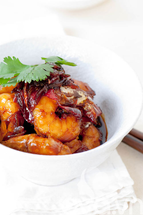 Món tôm rim nước sốt đã xong, giờ thì có thể ăn với cơm nóng, dưa cà, và một bát canh thật mát nhé.