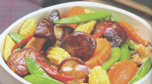 Nên cho bắp, cà rốt, ớt chuông vào xào trước rồi mới cho nấm vào. Nếu thích ăn kiểu món kho thì nên chọn nấm khô, ăn sẽ ngọt hơn.