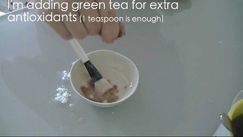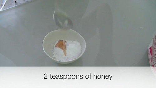 Vẫn tạo dung dịch với nguyên liệu và liều lượng giống mặt nạ đắp mặt, sau đó bạn cho thêm một thìa đường vào dung dịch vừa trộn, rồi dùng tay quết dung dịch lên mặt, mát-xa nhẹ nhàng để dung dịch cùng đường sạn có thể nhẹ nhàng tẩy đi các tế bào chết.