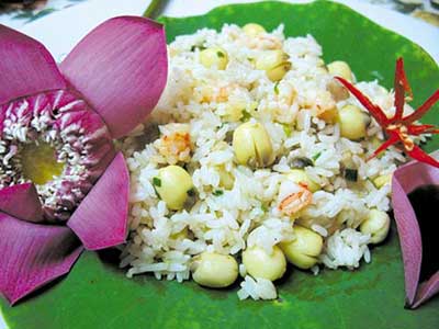 Lá sen mùi thơm quyến rũ giúp khai vị. Lá sen hấp với thịt gà, có tác dụng bổ hư tăng cường sinh lực. Những người vào mùa hè nóng nực, cơ thể mệt mỏi tì hư nhược, không muốn ăn, ăn không ngon miệng thì nên dùng món này.
