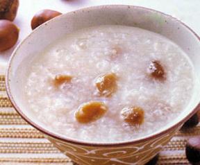 Bài 4 - Cháo hạt dẻ long nhãn: long nhãn 15g, hạt dẻ 10 - 20 hạt, gạo tẻ 50g. Hạt dẻ bóc vỏ, đập vụn, nấu với gạo thành cháo, khi cháo được cho long nhãn vào, đun sôi đều, khi ăn thêm đường. Dùng cho các trường hợp hồi hộp, tim loạn nhịp, mất ngủ, đau lưng mỏi gối.