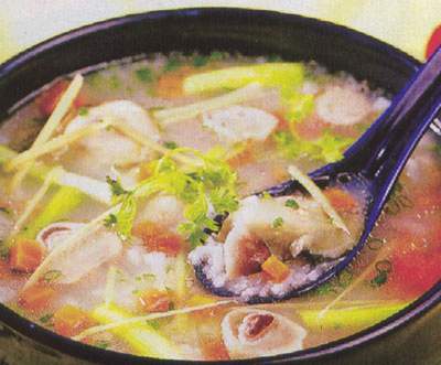 Cháo ngao với ngân hoa: Chứng này do ăn nhiều chất ngọt, chất béo, tích thấp sinh nhiệt, hoặc bị cảm nhiễm thấp nhiệt, bên trong ngăn trở trung tiêu, bốc lên can đởm làm thương tổn cơ gân khiến không cương lên được dẫn đến liệt dương. Công dụng: thanh nhiệt lợi thấp, chữa chứng can đởm thấp nhiệt