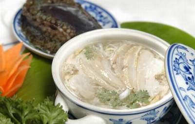 Súp bào ngư hải sản: Bột bắp hoặc bột đao 20g, bào ngư thái miếng 50g, thịt cua nạc 50g, tôm nõn 20g, nước dùng gà hoặc nước xương lợn hầm, gia vị đủ dùng. Cho các thứ trên vào đảo cùng với hành phi thơm. Cho bột đao hoặc bột ngô vào nước dùng gà quấy đều rồi đem nấu chín sền sệt, sau đó cho bào ngư cùng các hải sản đã xào chín vào, nêm gia vị là dùng được. Ăn khi nóng. Món ăn trên kết hợp các vị thuốc có thể điều trị đau lưng, mỏi gối, bổ thận trợ dương, dưỡng huyết. Bào ngư có tính bổ âm, tăng khí, bổ thận, tăng cường sinh lực cho nam giới, chống suy nhược cơ thể...