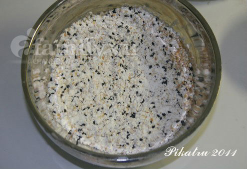 Trộn đều vừng đen, vừng trắng và bột ngô: