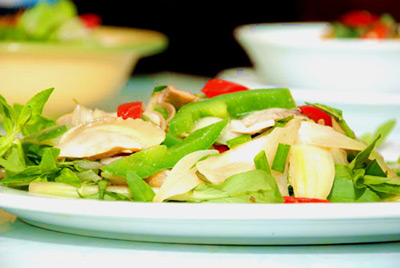 Giải nhiệt, mát bổ: Trai luộc chín, thái nhỏ, ướp gia vị vừa ăn, xào với hành phi thơm. Lọc nước luộc trai, đun sôi lại rồi cho trai đã xào vào, cho hành, răm, đảo đều ăn với cơm. Hoặc nấu món canh chua gồm thịt trai, quả me, cà chua, rau răm, hành. Phụ nữ có thai dùng món ăn này rất tốt.