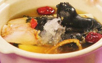 Hải sâm xào: hải sâm 300g, câu kỷ tử 10g, rượu 15ml, đảng sâm 10g, dầu vừng 35ml, bột mì 25g, nước tương, hành lượng vừa đủ; đảng sâm cắt lát, cho vào nước nấu cho sắc lại còn 10ml nước, câu kỷ tử rửa sạch cho vào bát đem hấp chín. Hải sâm cắt thành từng miếng, hành cắt khúc đều nhúng qua nước sôi. Bắc chảo dầu sôi, cho hành, hải sâm, rượu vào nấu liu riu cho sệt lại rồi cho nước đảng sâm, nước tương đậu nành xong mới đổ câu kỷ tử đã chưng chín vào, dùng nước sôi khuấy chín bột mì, rưới lên đảo đều vài lần là xong. Ăn với cơm.