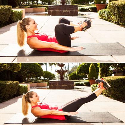 Sử dụng việc hít thở để làm cơ bụng của bạn vận động hiệu quả nhất, bạn có thể nâng cao bài tập bằng cách duỗi thẳng hoặc mở rộng chân hơn.