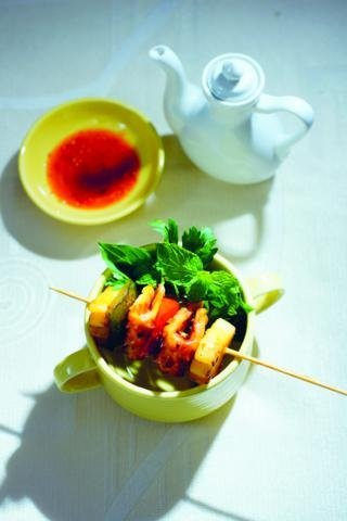 MỰC XIÊN NƯỚNG VỚI THƠM VÀ RAU CỦ
