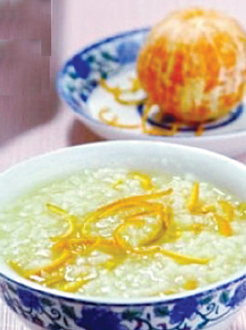 Cháo gạo, trần bì (vỏ quít khô):