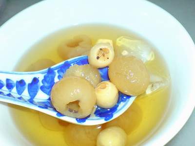 Chè long nhãn, hạt sen: Hạt sen lột vỏ bỏ tim, luộc chín. Long nhãn ngâm nước khoảng 10 phút cho nở mềm. Hòa nước luộc hạt sen với nước lã cho đủ 1 lít nước, cho đường vào, đặt lên bếp nấu sôi cho đường tan, cho hạt sen và long nhãn vào đun sôi nhỏ lửa khoảng 10 là dùng được. Món chè này có vị ngọt thanh mát thích hợp dùng trong những ngày hè nóng nực, rất tốt với những người thiếu máu, mệt mỏi, mất ngủ