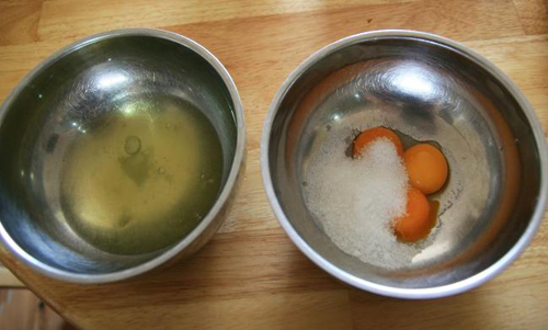 - Tách riêng lòng đỏ và lòng trắng trứng gà