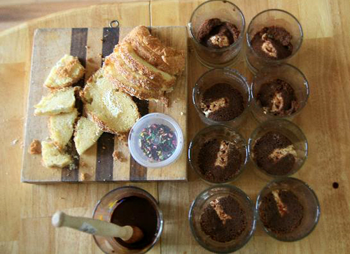 - Rưới nước cacao hòa tan với đường lên bánh cho ngấm