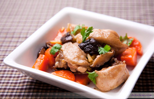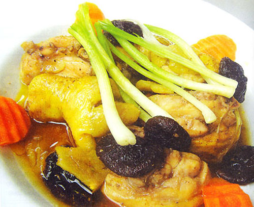 Cho thịt gà đã rán vào nồi, đổ sâm sấp nước, đun khoảng 15 phút cho mềm thịt gà, bỏ nấm hương và nước cà chua vào đun tiếp khoảng 15 phút nữa thì pha bột đao với nước, đổ vào nồi. Đun sôi lại, thấy nước sền sệt thì tắt bếp, múc ra bát, ăn nóng kèm bánh mì hoặc cơm.
