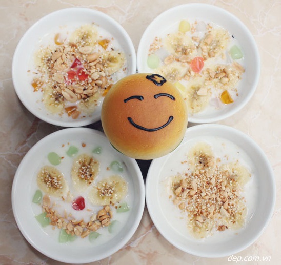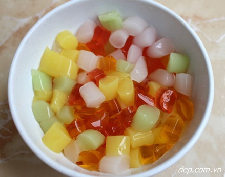 Bước 5: Cuối cùng là khâu trang trí. Múc chè ra từng bát con. Nhớ rắc vừng và lạc vừa giã vào từng bát nhé. Bạn có thể cho thêm thạch để món chè của mình thêm hấp dẫn và đẹp mắt hơn. Đây là thành phẩm.