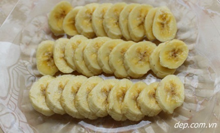 Bước 2: Bóc chuối và cắt lát thành từng miếng nhỏ.