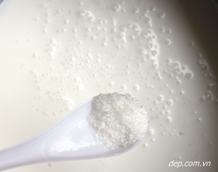 Bước 3: Cho nước cốt dừa vào nồi, cho thêm 2-4 muỗng đường (tùy theo lượng ngọt mà gia đình bạn thích ăn).Khuấy đều nước cốt dừa cho đến khi sôi.