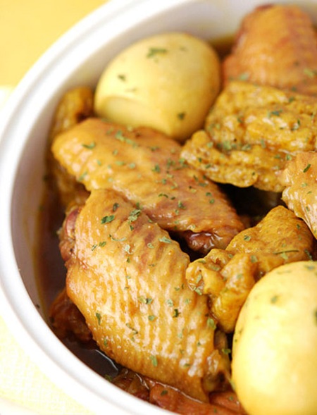 - Bột cà ri, viên súp gà, muối, đường, hạt tiêu, nước tương, rượu trắng