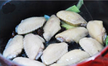 Tiếp theo, cho cánh gà vào đun cùng nước dùng. Các bạn nhớ bỏ bột cà ri và viên súp thịt vào nhé. Sau đó cho cả đậu vào đun cùng.