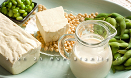 Protein đậu nành được tìm thấy trong các sản phẩm như đậu hũ và sữa đậu nành, bơ hạt đậu nành và ngũ cốc. Protein đậu nành giúp trái tim khỏe mạnh (giúp giảm mức cholesterol "xấu") và giàu dinh dưỡng thực vật. Mỗi ngày, chị em nên bổ sung 25 gram protein đậu nành.