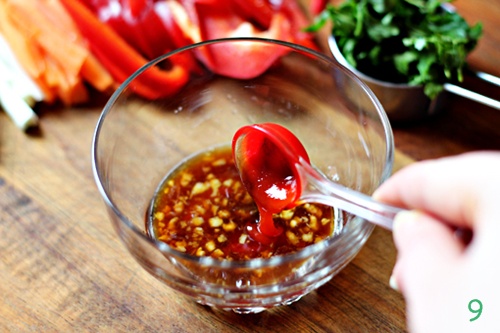 Trong một bát nhỏ, bạn trộn đều nước tương đậu nành với nước cốt chanh, tương ớt và tỏi xay. Đây chính là hỗn hợp sốt sẽ làm nên vị chua ngọt tuyệt ngon cho món gà xào: