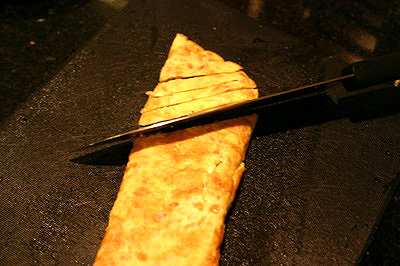 Rồi dùng bàn xảm hoặc thìa lật nhẹ nhàng mép miếng trứng lên, giữ một lúc.