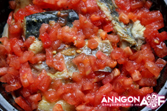 Dàn đều cà chua bằm lên trên.