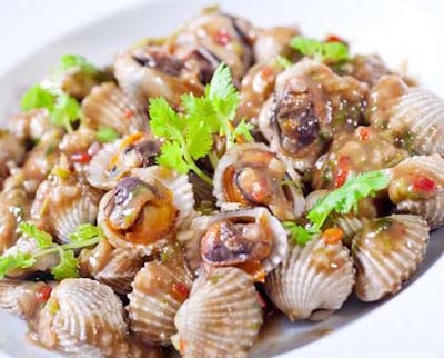 Kinh nguyệt ra quá nhiều: thịt sò huyết 100g nấu với thịt lợn 100g. Ăn trước khi hành kinh.