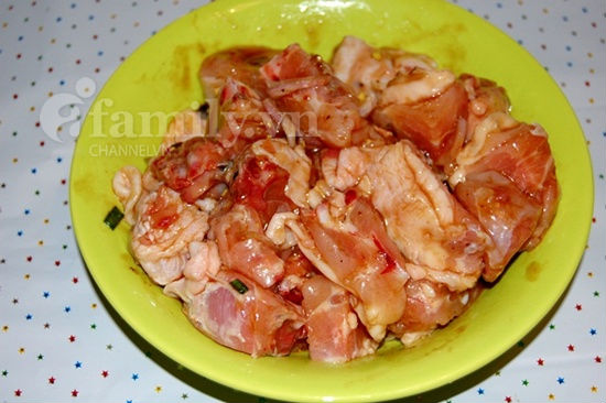 Ướp phần gia vị vừa pha với thịt gà trong khoảng 30 phút, thỉnh thoảng đảo đều để thịt ngấm đều hơn: