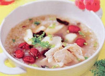 Cháo sơn dược (củ mài), hạnh nhân: Sơn dược 100g, hạnh nhân 200g, kê 100g, một ít bơ. Sơn dược nấu chín, kê sao qua, hạnh nhân sao chín bỏ vỏ, cắt nhỏ. Mỗi lần lấy 10g hạnh nhân bột, sơn dược, kê vừa đủ hoà với nước sôi để nguội, cho một ít bơ là được. Dùng cho chứng bệnh tỳ hư thể nhược, phế hư, ho lâu... Ngày ăn một lần.