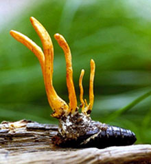 Đông trùng hạ thảo: Vị ngọt, tính ấm, có công dụng bổ hư tổn, ích tinh huyết, là một trong những vị thuốc - thực phẩm nổi tiếng của Y học cổ truyền, sánh ngang với nhân sâm và nhung hươu, thường được dùng để chữa chứng “kiện vong” do thận hư.