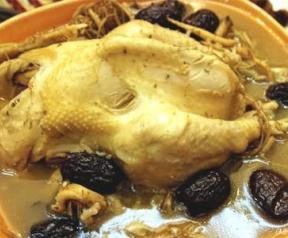 Gà hầm sâm kỳ, táo nhân: Gà mái choai 1 con khoảng 7 - 8 lạng (nên chọn gà ri, chân bé và thấp); phòng sâm và hoàng kỳ mỗi vị 20g; táo nhân sao đen 16g; rượu trắng 1 chén nhỏ; gia vị vừa đủ. Gà làm sạch lông, bỏ nội tạng, rửa sạch. Phòng sâm, hoàng kỳ thái lát rửa sạch cùng với hắc táo nhân bỏ vào bụng gà khâu lại. Cho gà vào xông, đổ nước vừa đủ, thêm 3 lát gừng, một chén rượu, hầm trên bếp củi. Lúc đầu cho to lửa, sau hạ nhỏ nấu sôi âm ỉ khoảng 1 tiếng rưỡi đến 2 tiếng. Kiểm tra thấy gà chín mềm là được, thêm gia vị, rau thơm ăn nóng. Bài này bổ tâm thận, điều hòa thủy hỏa, rất tốt cho nam giới hay hồi hộp, lo âu, ra nhiều mồ hôi, suy nhược cơ thể. Tuần ăn 2-3 lần.