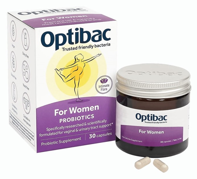 Men vi sinh Optibac Probiotics bao gồm 2.3 tỷ vi khuẩn, gồm 2 chuẩn vi khuẩn là Lactobacillus rhamnosus GR-1 và Lactobacillus reuteri RC-14 hỗ trợ tốt cho sức khỏe âm đạo, đường tiết niệu của phụ nữ. Sản phẩm dùng được cho trẻ em trên 4 tuổi, phụ nữ có thai, cho con bú.